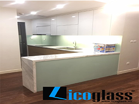 Kính ốp bếp màu xanh nhạt tại Imperia