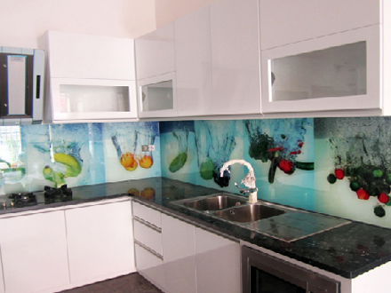 Không chỉ đơn giản là kính ốp màu bình thường, kính ốp bếp hoa văn 3D được in khắc họa tiết, phun màu lên mặt sau của kính tạo nên một không gian nghệ thuật sinh động đầy ân tượng và cuốn hút cho gian bếp nhà bạn, mà vẫn rất dễ dàng vệ sinh lau chùi.
