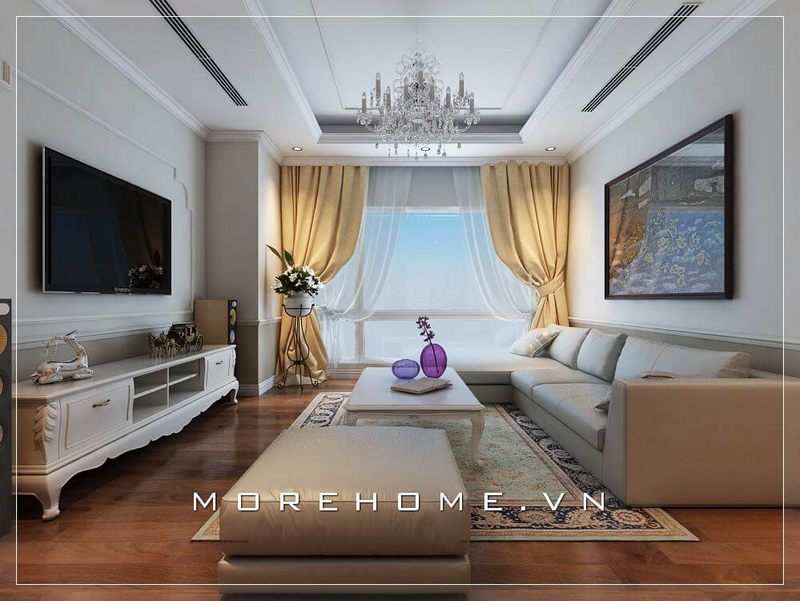 Trang trí phòng khách chung cư cao cấp với nội thất hiện đại, tinh tế gam sáng mang đến không gian thư giãn và tiếp khách tuyệt vời