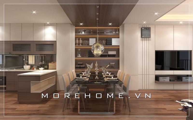 Thiết kế phòng ăn chung cư theo phong cách hiện đại mang đến không gian ấm cúng, thoải mái cho các thành viên trong gia đình