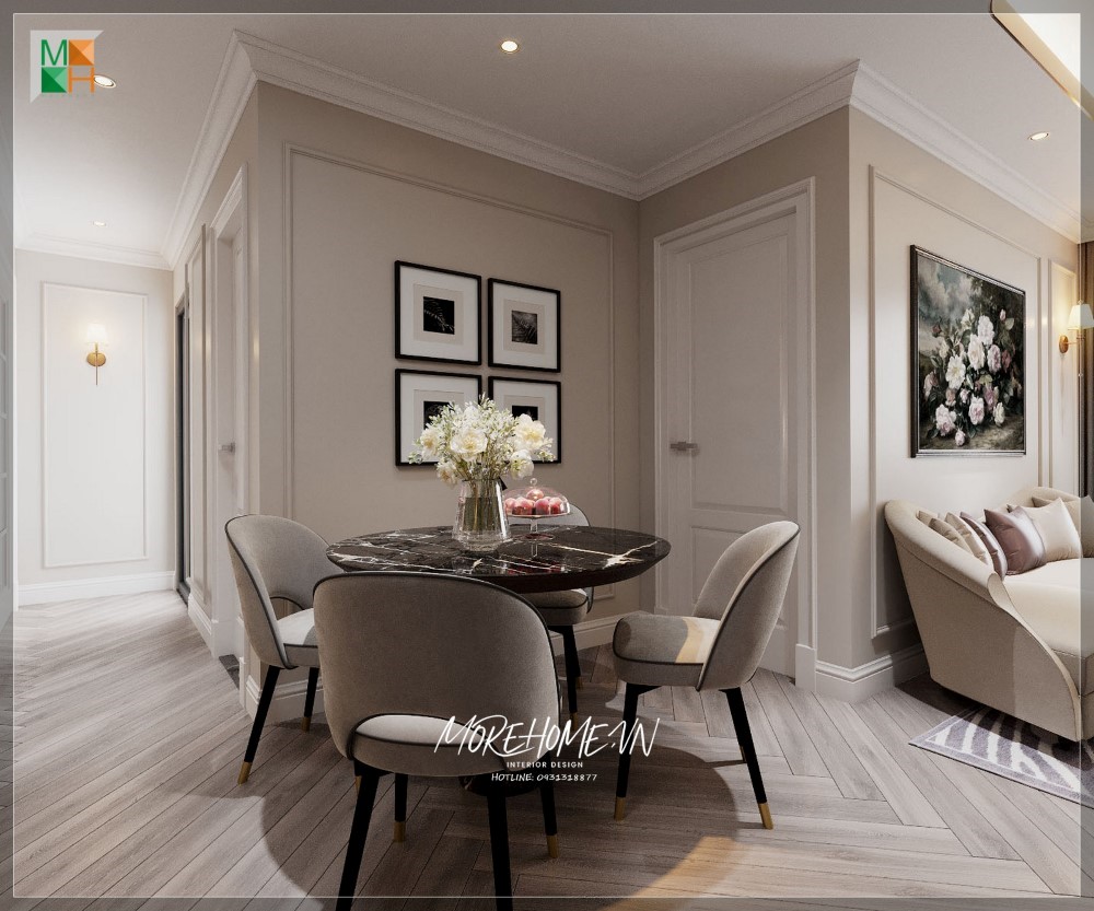 Không chỉ là vật liệu bền bỉ và dễ bảo quản, sàn gỗ còn có khả năng chống ẩm tốt, giúp duy trì độ mới mẻ của căn phòng. Bên cạnh đó, việc trải sàn gỗ vào phòng khách cũng mang lại hiệu quả âm thanh tốt nhờ tính linh hoạt trong việc chống rung và giảm tiếng ồn từ các bước chân, tạo nên không gian yên bình và thư giãn.