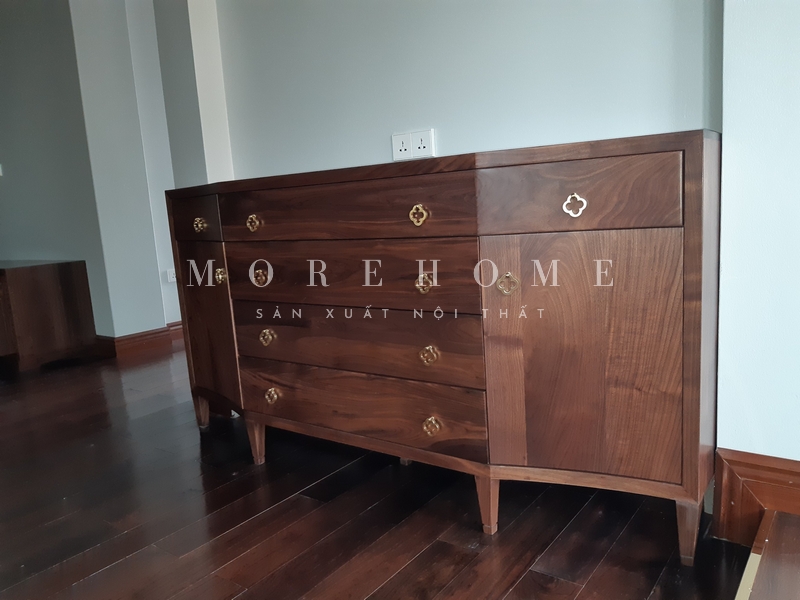 Một trong những điểm nổi bật là sự kết hợp giữa gỗ và kim loại, mang đến vẻ đẹp hiện đại nhưng vẫn giữ được nét ấm áp của thiên nhiên. Những thiết kế bàn ghế, kệ trang trí hay tủ quần áo không chỉ đơn thuần là vật dụng mà còn trở thành tác phẩm nghệ thuật, thể hiện phong cách sống của gia chủ.